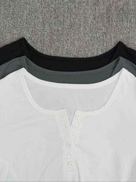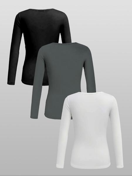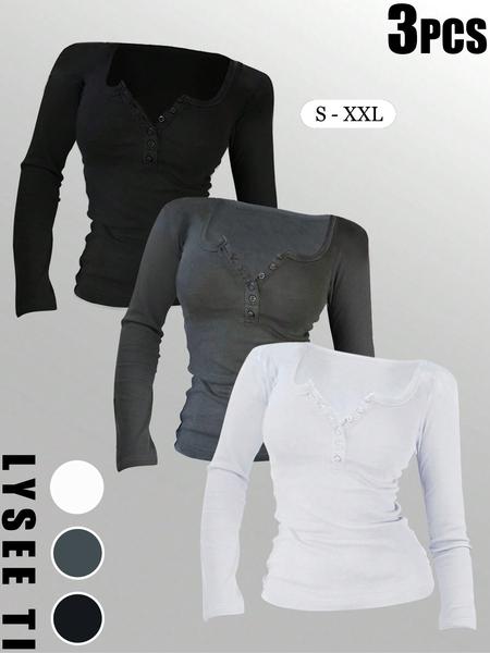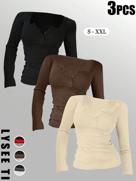 3Pcs Autumn and Winter Women'S Casual Fashion Sports Multi Button round Neck Solid Color Long Sleeved Top Mixed Three Piece Set