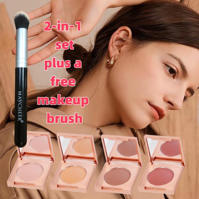 Maycheer-Soft Matte Waterproof Concealer Set 2 Pieces & Free Brush Colored Tone CC Eye Concealer Soft Matte Concealer Lightweight and Matte Adapts to Natural Skin Waterproof and Sweatproof Does Not Remove Makeup Concealer Cosmetic Box Moisturizer