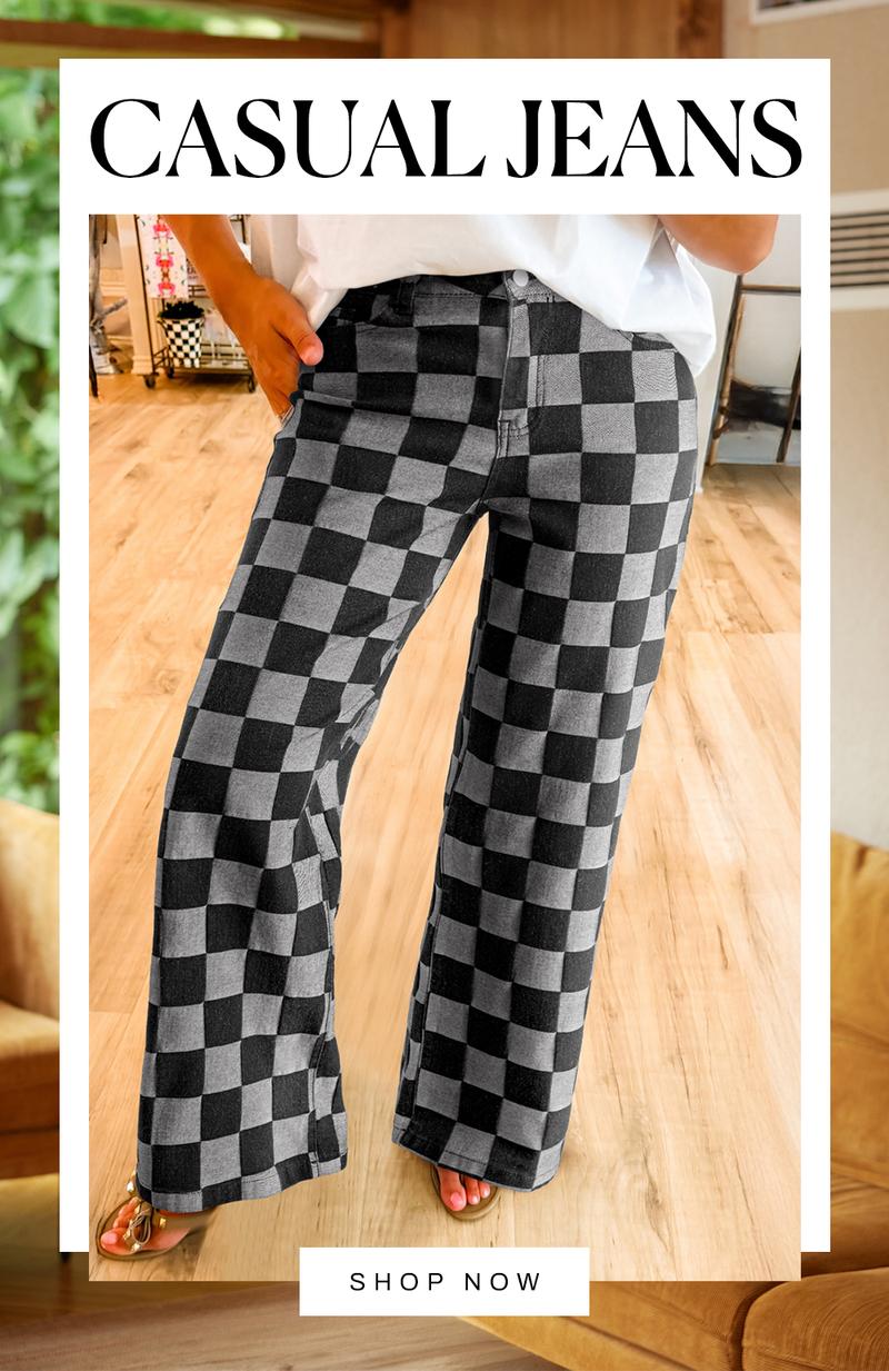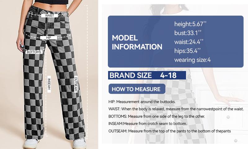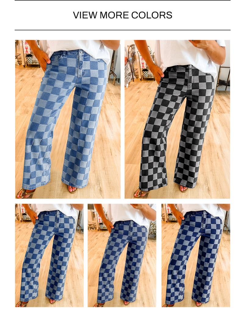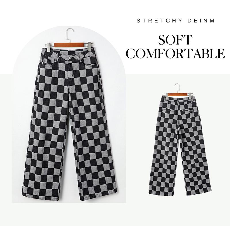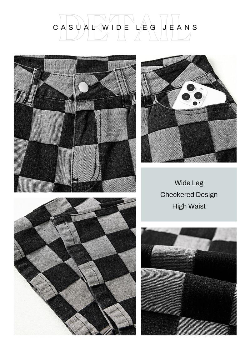 Style:Combining retro wide-leg appeal with a modern checkered design, these jeans offer a unique vintage-meets-trendy look. Express your confidence whether you love classic or contemporary fashion.